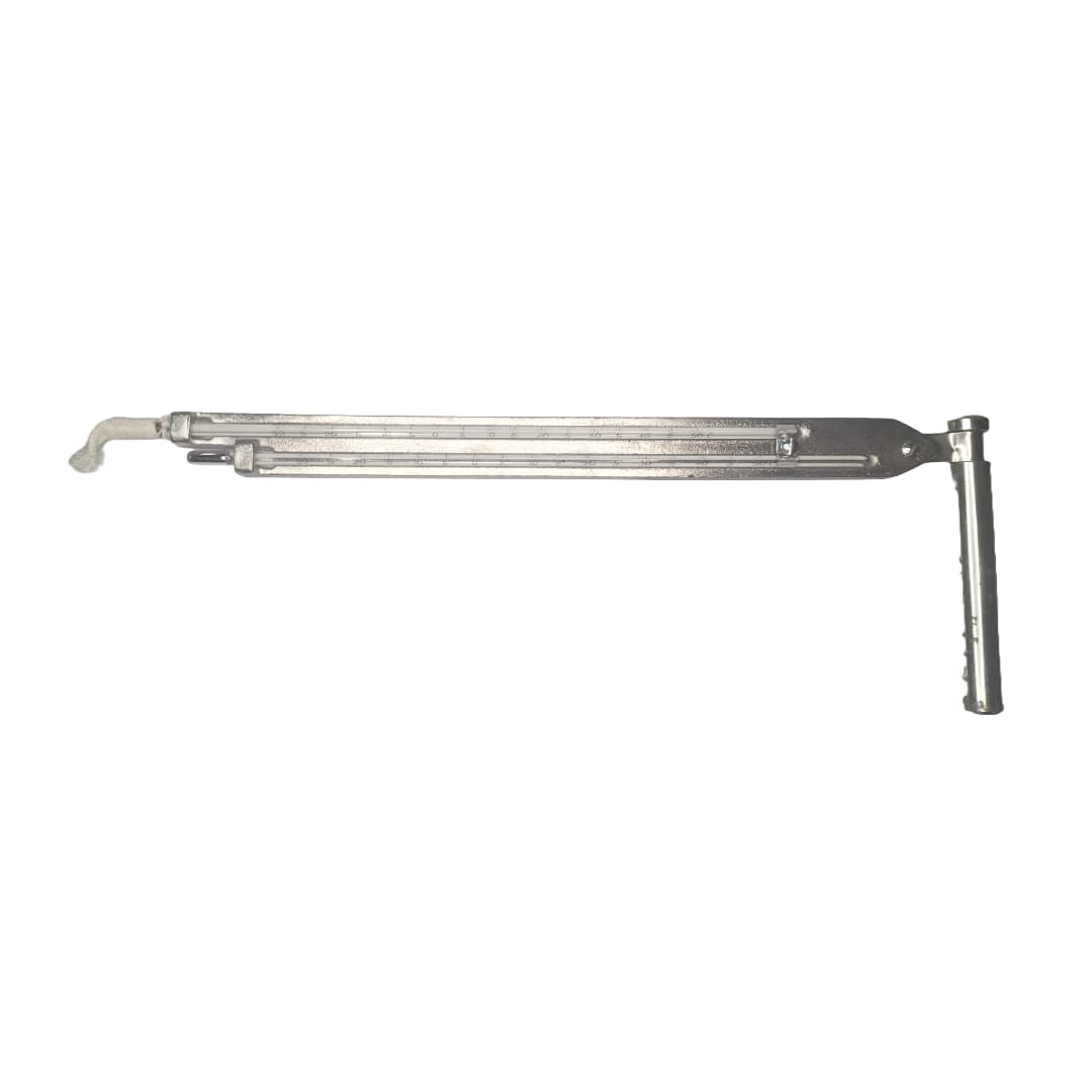 Dos termómetros equilibrados similares montados sobre panel de latón con cadena. Un mango de metal permite girar el instrumento. Privisto con tala psicrométrica y estuche de cuero. Rango –20 a 50oC en 1/2° div. El tamaño de la caja es de 200 x 40 x 40 mm.